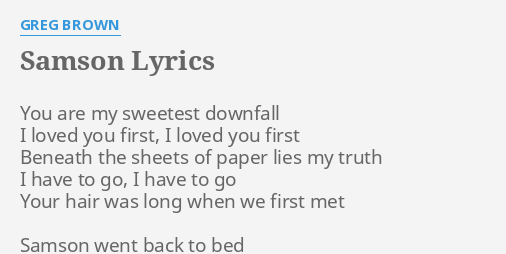 Samson Went Back To Bed. Your hair was long when we first met. Lyrics to Samson by GREG BROWN. Your hair was long when we first met.